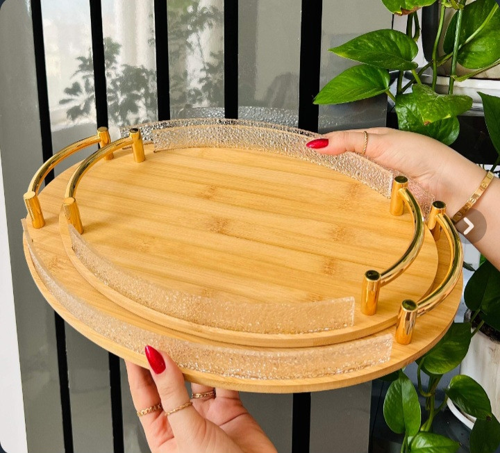 ست سینی دو تیکه بامبو دور اکرولیک