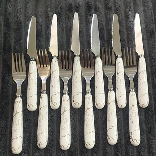 ۶چاقو و 6چنگال دسته سرامیکی طرح ماربل