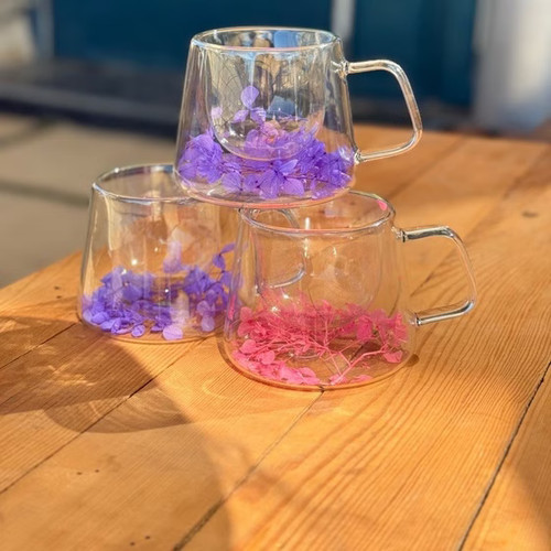 لیوان دوجداره گل گلی - صورتی