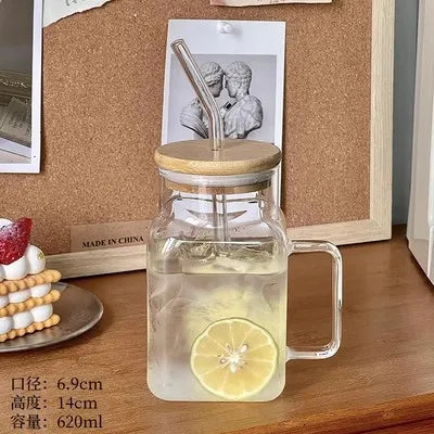لیوان پیرکس دسته چوبی با زیر بامبو